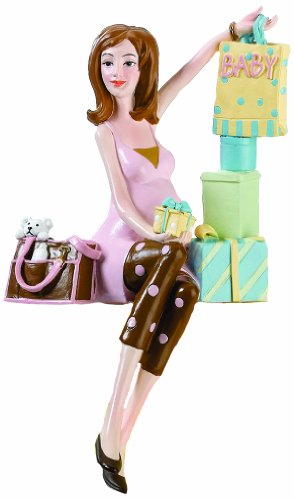 Description of Mommy To Be - 6.25" Baby Shower Caketop Keepsake Figurine of Pregnant Lady Holding Presents and Gifts